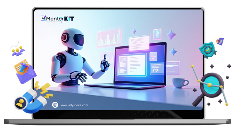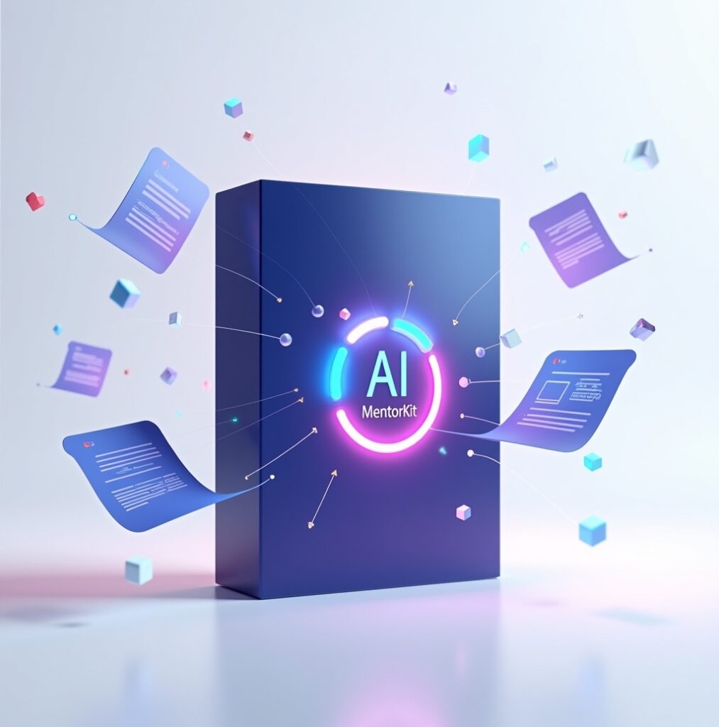 AI MentorKIT adalah e-course + toolkit praktis yang membantu kamu bikin kursus digital profesional dari ide mentah sampai video siap jual, tanpa perlu tampil di kamera atau rekam suara.
